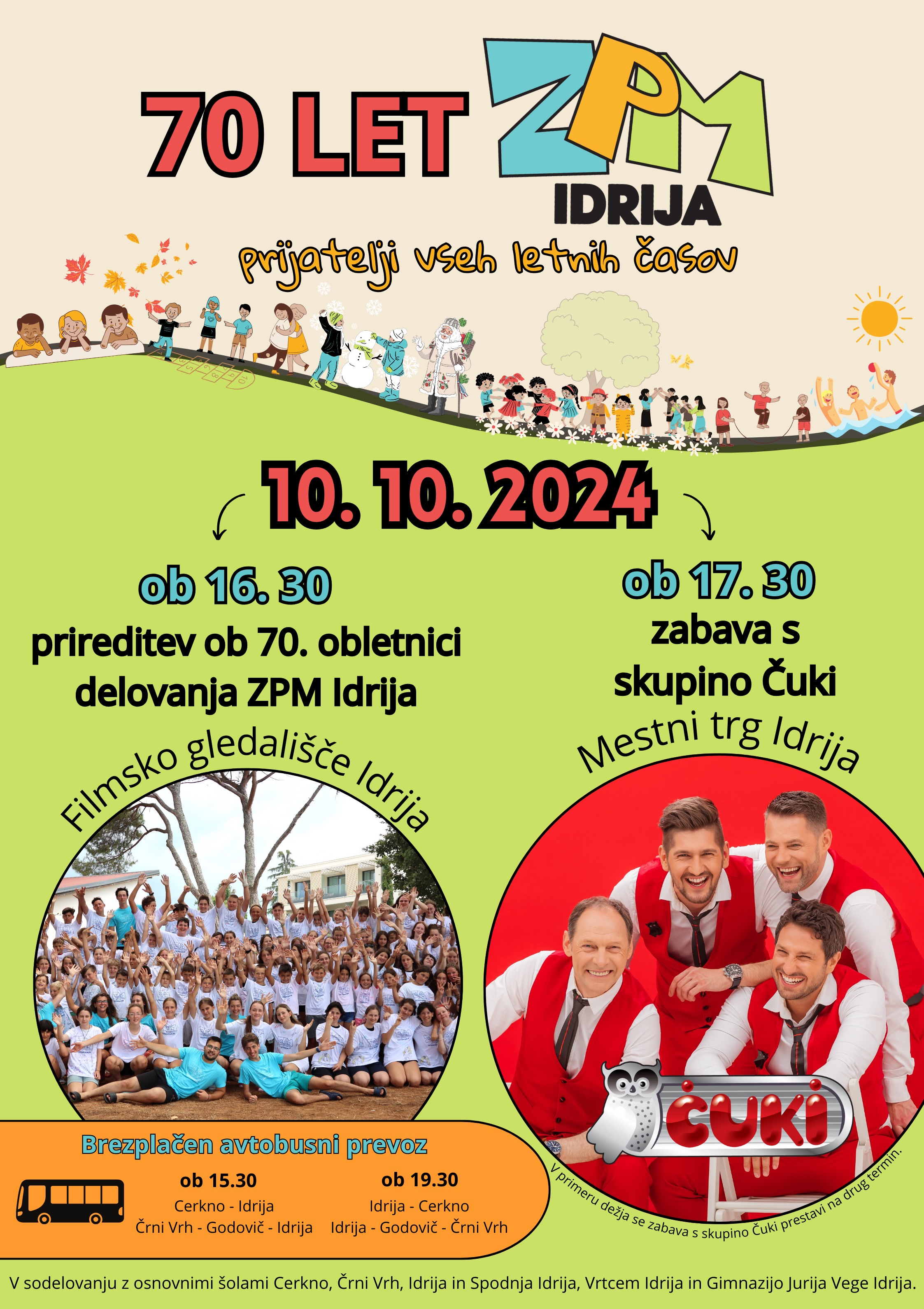 V četrtek, 10. oktobra 2024 vabljeni na prireditev ob 70. obletnici delovanja Zveze prijateljev mladine Idrija.