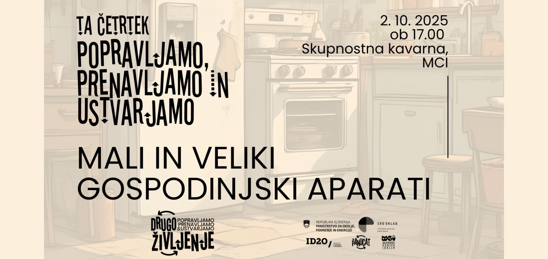 Vabljeni v Skupnostno kavarno MC Idrija, kjer bo v četrtek, 2. oktobra med 17.00 in 19.00 mojster Jure iz servisa Jurco nudil brezplačno diagnostiko za male in velike gospodinjske aparate. Na voljo bodo tudi manjša popravila!
