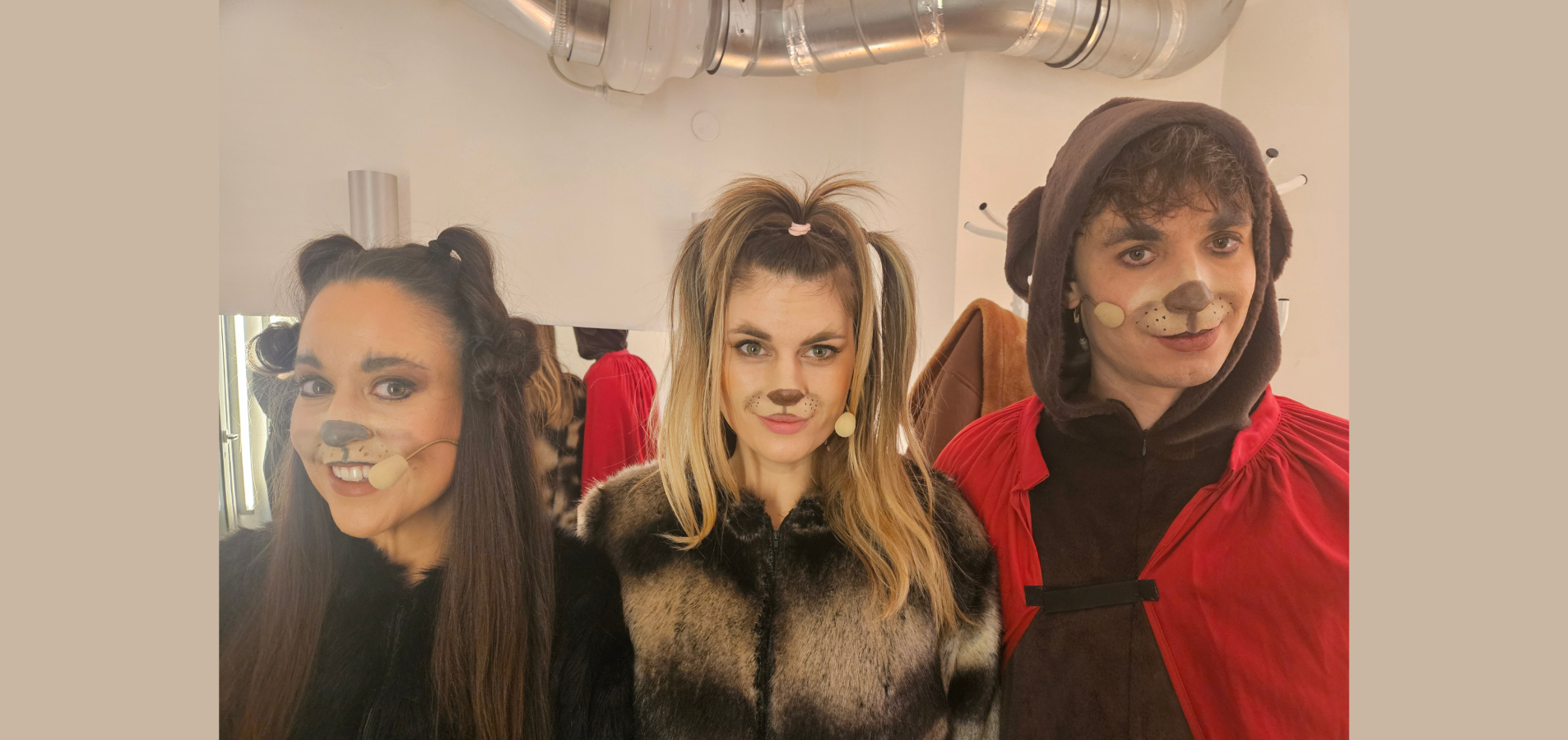 Na oder prihaja predstava, ki združuje čar stripa, muzikalno razigranost in pasje modrosti. Trije psi so stripovsko gledališka dogodivščina, ki z veliko mero humorja, topline in pasjih modrosti pripovedujejo o univerzalnem iskanju: varnosti, ljubezni in prijateljstva. Trije psi so poklon pasjim prigodam, ki – tako kot vse velike zgodbe – nosijo nekaj resničnega, zabavnega in nekaj zelo pomembnega. Spomnijo nas, da so zgodbe psov pogosto bolj človeške, kot si upamo priznati, in da se prava dogodivščina včasih skriva prav v najbolj vsakdanjih stvareh, včasih tudi v klobasi.