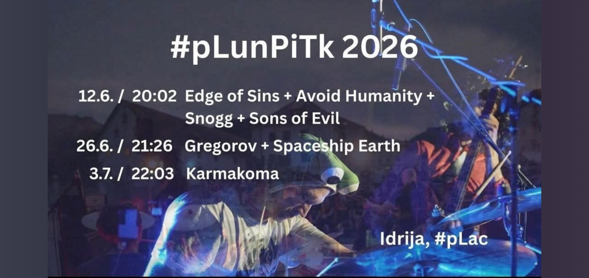 V petek, 12. junija 2026 ob 20.02 vabljeni v Idrijo na Mestni trg na prvega v nizu koncertov #pLunPiTk.